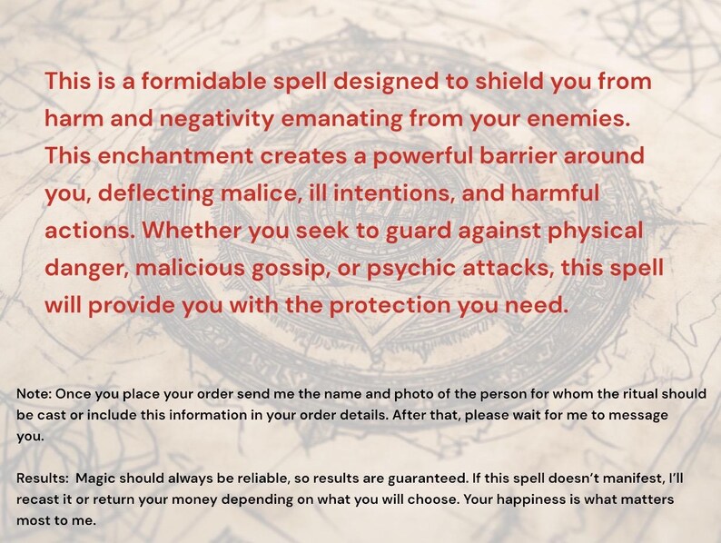 Note: Once you place your order send me the name and photo of the person for whom the ritual should be cast or include this information in your order details. After that, please wait for me to message you.