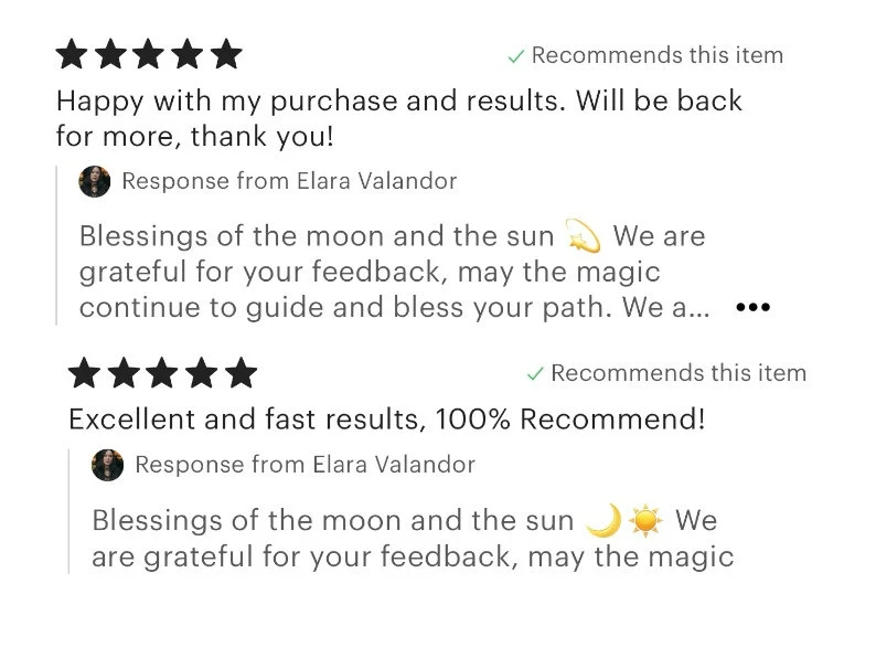 Our ritual services are designed to bring about profound changes aligned with your desires. While outcomes can manifest as fast as within a day, the process can also unfold over a transformative journey. Rest assured, results are guaranteed, reflecting our commitment to your satisfaction and we stand by that guarantee. In the unlikely instance that you do not experience the desired effects within 4 months, we offer either a recast as no charge or a full refund, ensuring your peace of mind throughout the process.