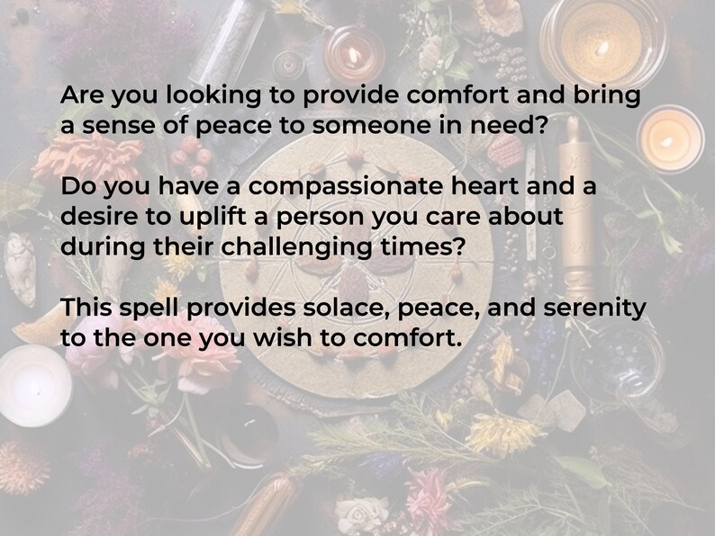 This spell provides solace, peace, and serenity to the one you wish to comfort.