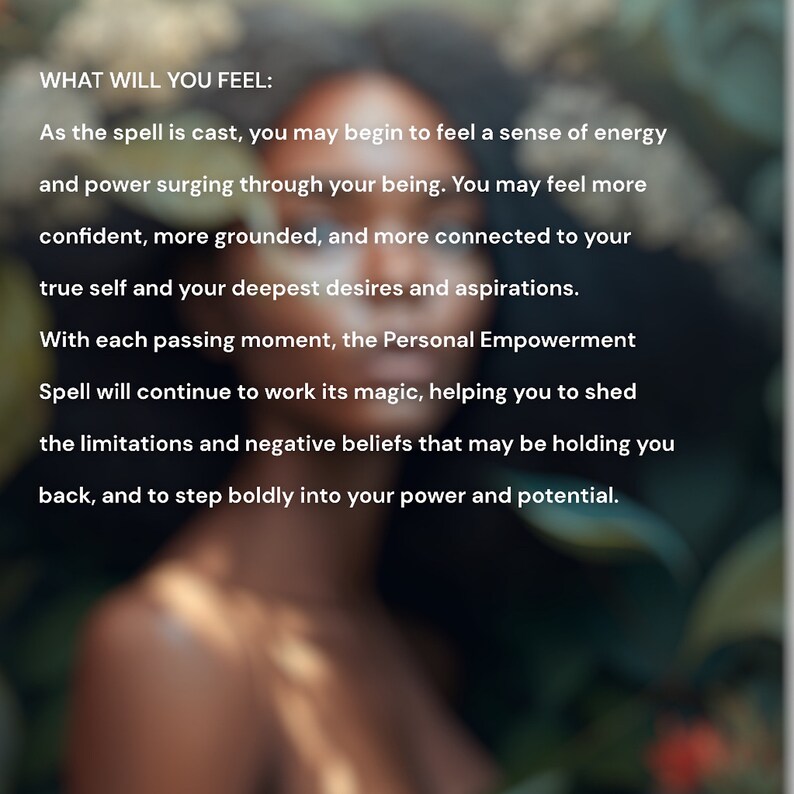 With each passing moment, the Personal Empowerment Spell will continue to work its magic, helping you to shed the limitations and negative beliefs that may be holding you back, and to step boldly into your power and potential.