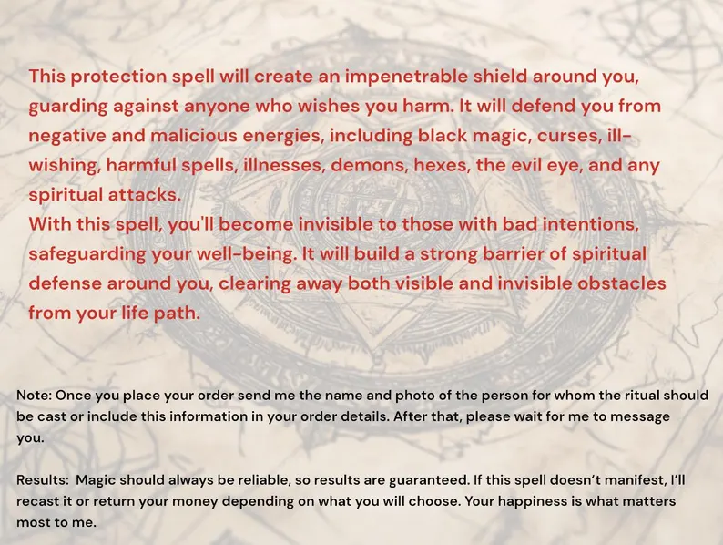 Note: Once you place your order send me the name and photo of the person for whom the ritual should be cast or include this information in your order details. After that, please wait for me to message you.